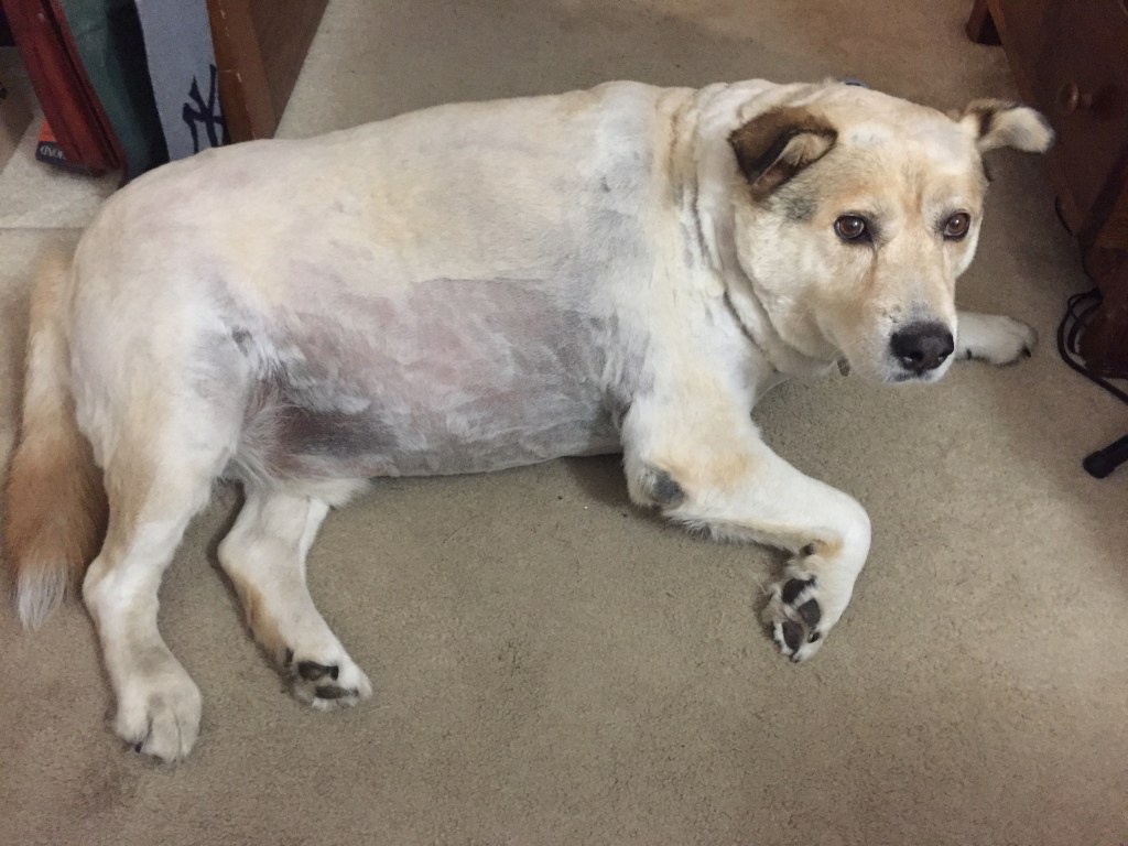 But, back to Duke. He was so good. He only ran away once, and not far –– only into the house. He eventually came back and allowed me to shave him. I shaved for hours. We took breaks. We took naps. We had snacks. But we always returned to the task at hand: trying to match the length of the rest of his body hair to the length of his back hair. That did not prove, possible, however. I soon realized that I would have to shave him hairless to make his hair even, and I didn’t think that look would work for him.