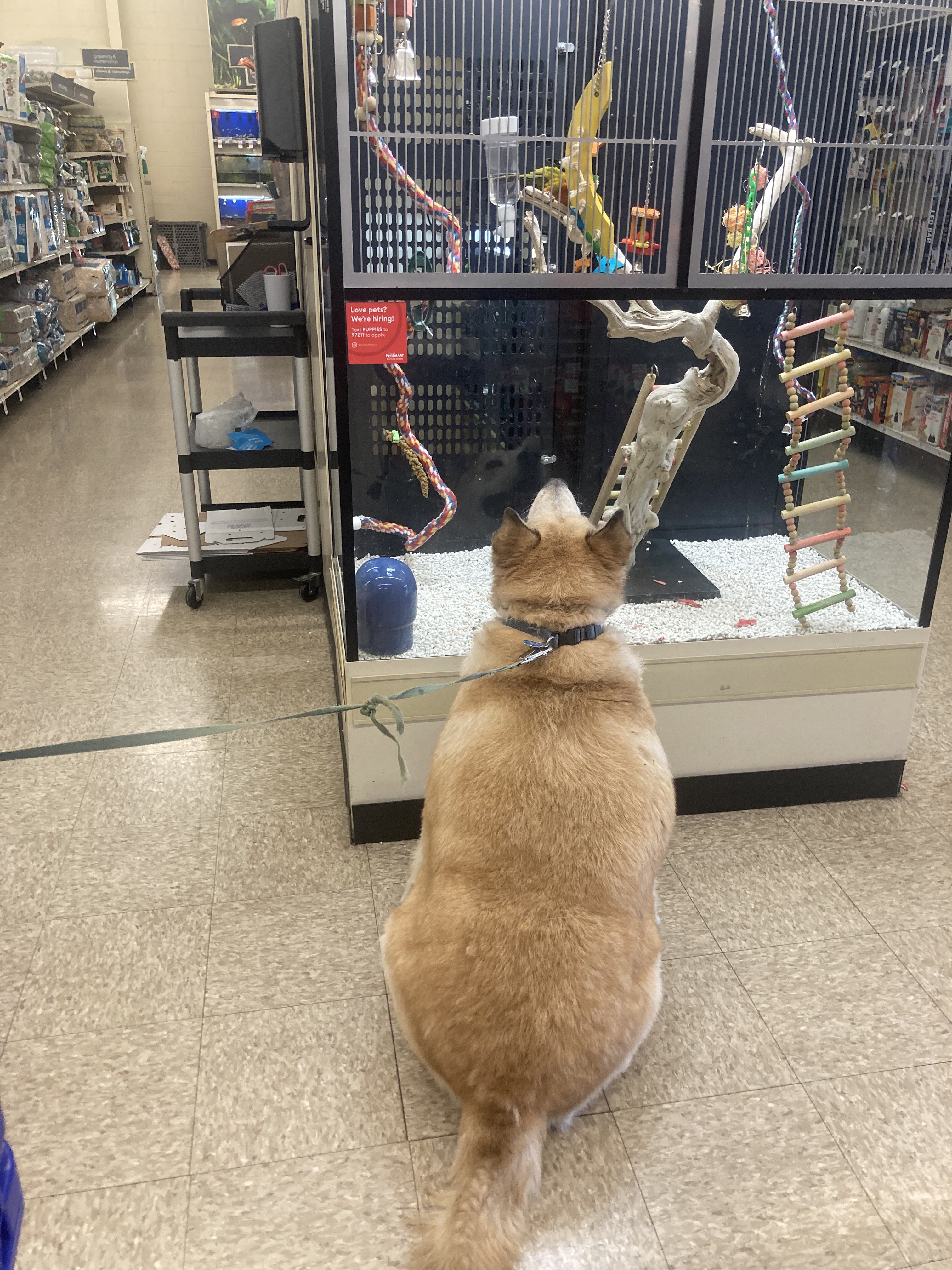Duke entered the store giddily. He loves pet stores because he can sniff every product, and attempt to free the caged animals.